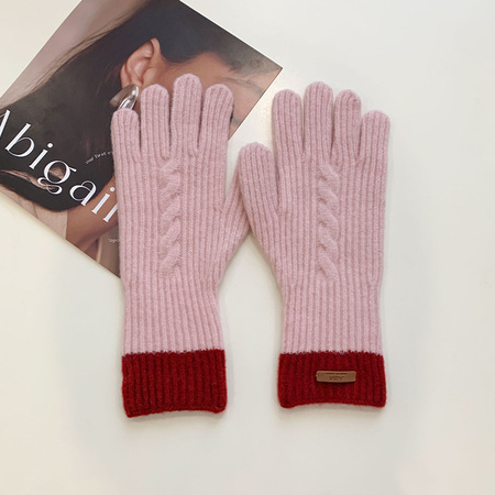 普春羊毛混纺撞色拼接针织手套ST-552·粉色