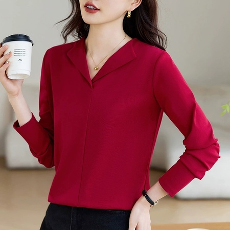 【高弹92棉】轩凌子柔滑高支翻领T恤S82510011·酒红色