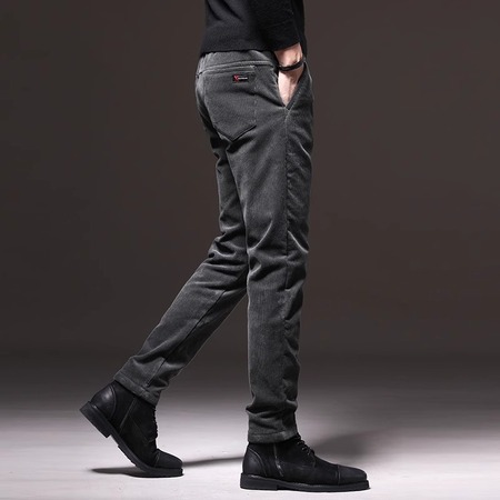 红览 秋冬季羊羔绒休闲裤子加绒加厚保暖棉裤8879·深灰