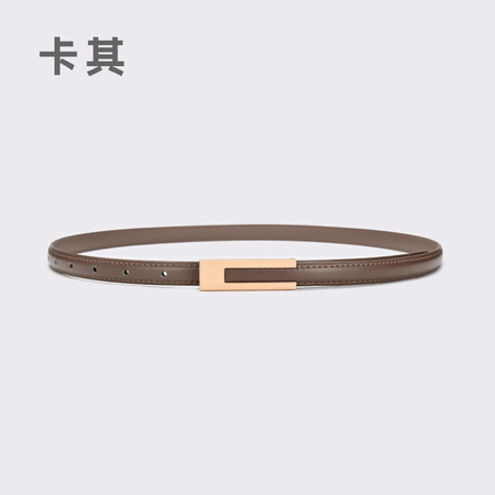 杜鹃鸟细款简约百搭牛皮腰带15229·卡其