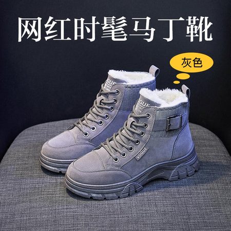 网红马丁靴加绒保暖女短靴2175#·灰色