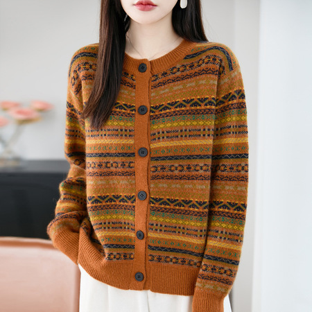 特舒冬款加厚彩色条纹开衫毛衣TS-2127·橘色