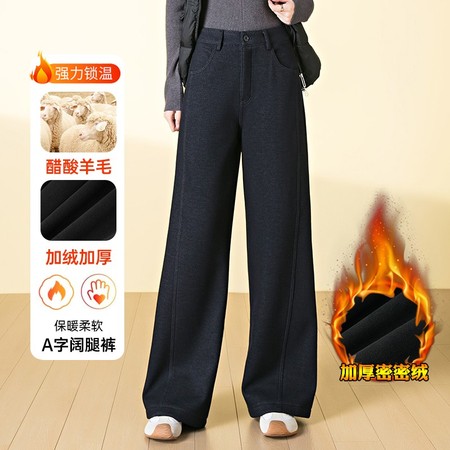 【大牌代工厂出品】和顺圣加厚绒醋酸羊毛呢A字阔腿裤3080A·蓝色