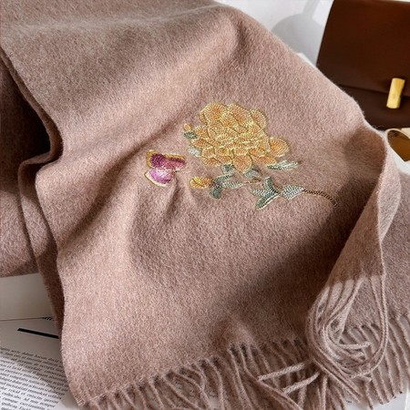 【100羊毛】普春牡丹刺绣围巾YM-085·摩卡