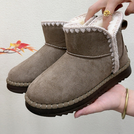 京昇超柔细绒厚底轻便钩花雪地靴12-31·卡色