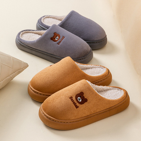 4双哈美羊羔绒小熊厚底EVA棉拖鞋9002·颜色随机