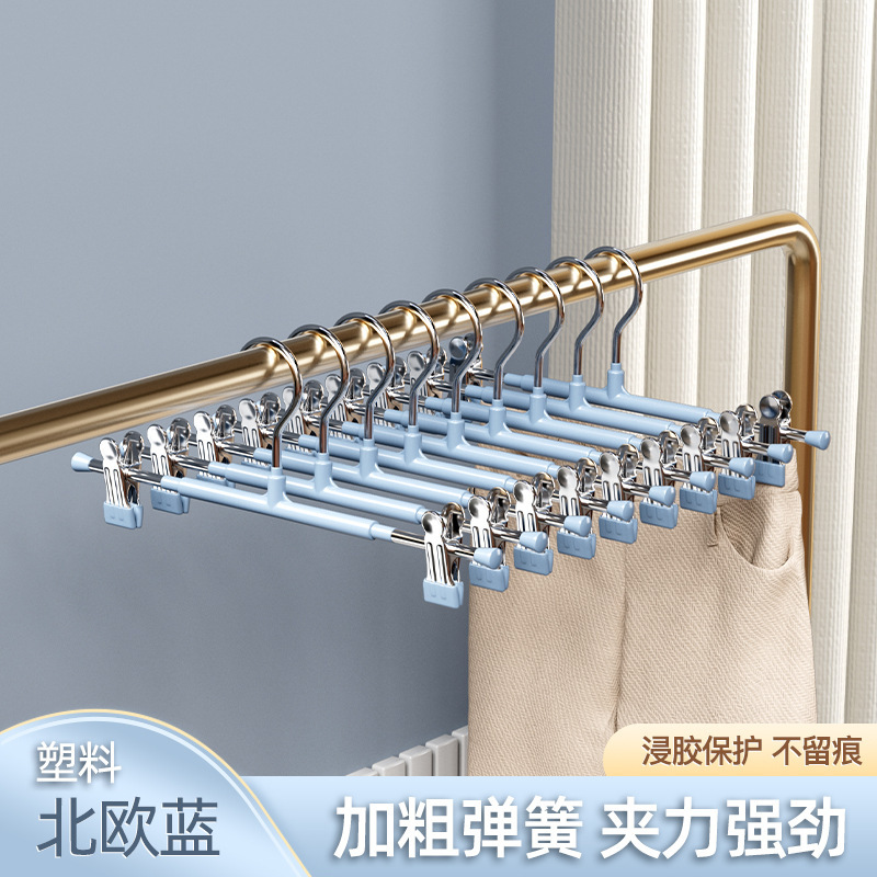 15个不锈钢无痕裤架家用衣柜挂裤子衣架防滑晾晒·北欧蓝