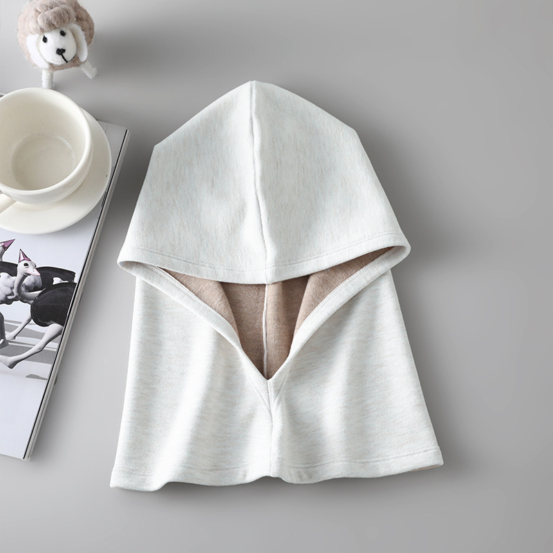 真丝羊毛拉绒护颈围脖防风连体帽·白色
