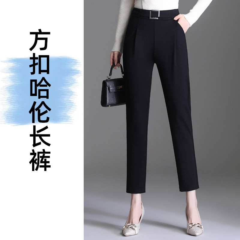 【销量王/限量补货】专柜款哥弟面料垂顺有型高腰显瘦哈伦裤·方扣【长裤黑色】