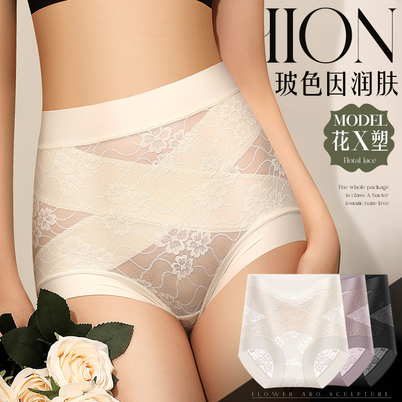 【聚乳酸蚕丝裆】韵梦兰花X轻塑形高腰内裤4条86439·颜色随机