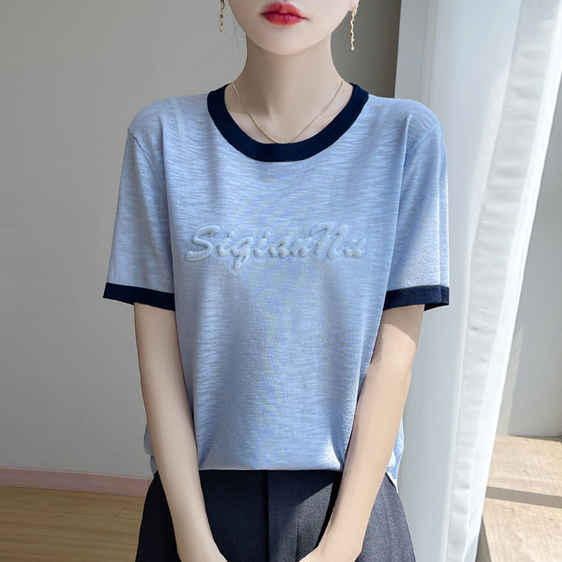 【凉爽竹节麻】爆款撞色立体字母经典利落时尚短袖·蓝色