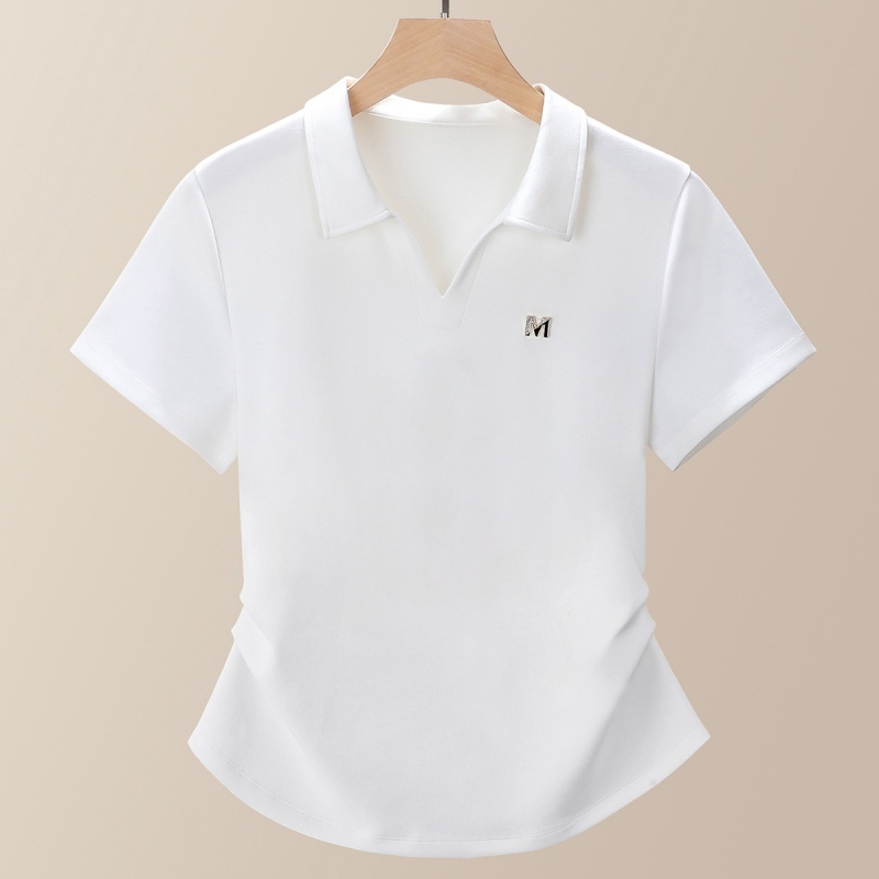 修娴高弹螺纹棉POLO衫T恤M825·白色