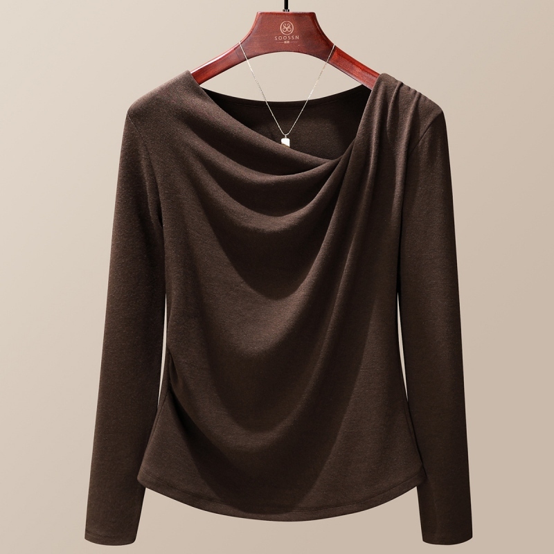 【超弹绒感】修娴斜领抽褶T恤M929·深咖色