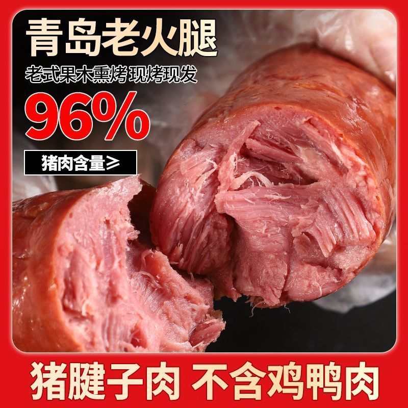 【96%含肉量】青岛老火腿 300g*5根 即食熟食 山东特产 下酒菜火腿肠