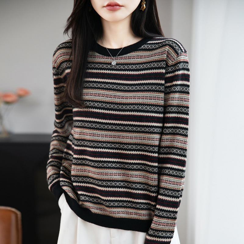 当前位置: 首页 > 服饰 > 女装 > 针织衫 > 上新限时96折【精纺羊毛】特舒宽松复古条纹针织衫ts-220·黑红