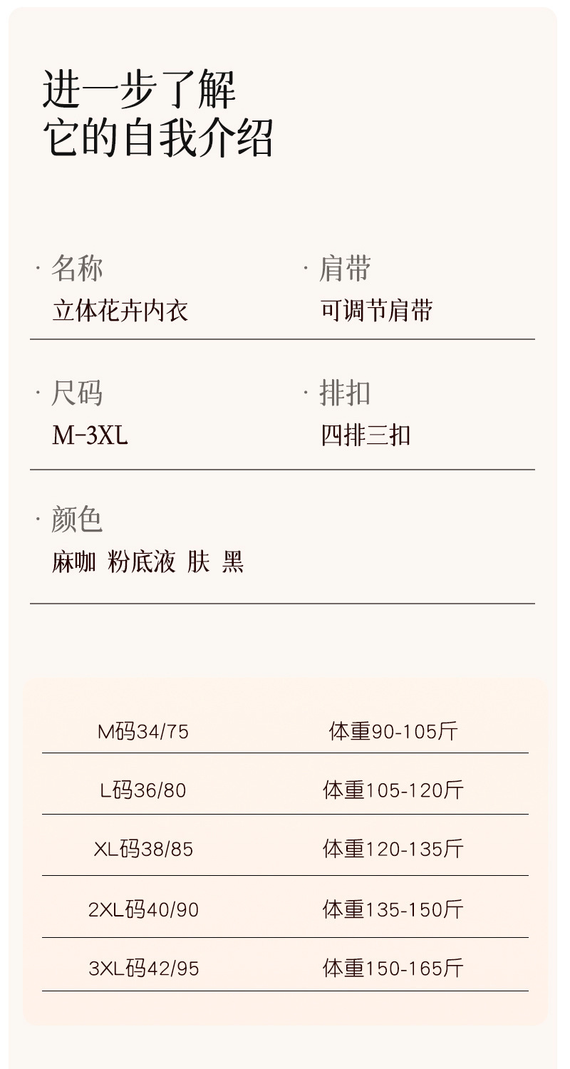 当前位置: 首页 > 服饰 > 内衣 > 保暖内衣 > 安莎婷浮雕提花科技软支撑文胸CYI815·肤色