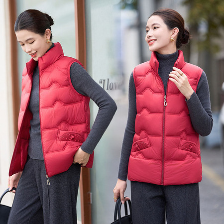 当前位置: 首页 > 服饰 > 女装 > 羽绒服/棉服 > 时尚羽绒棉拉链口袋保暖立领百搭马甲·红色