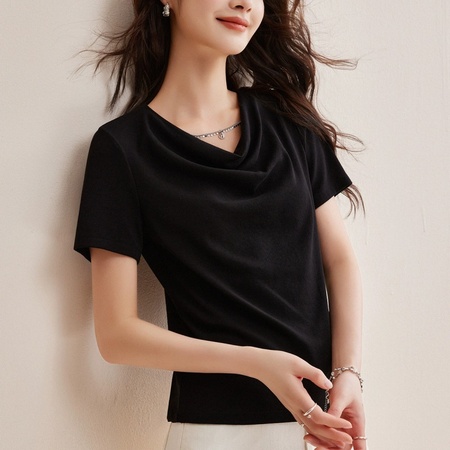 预售【高弹92棉】轩凌子高支撞色刺绣T恤S82530155·黑色