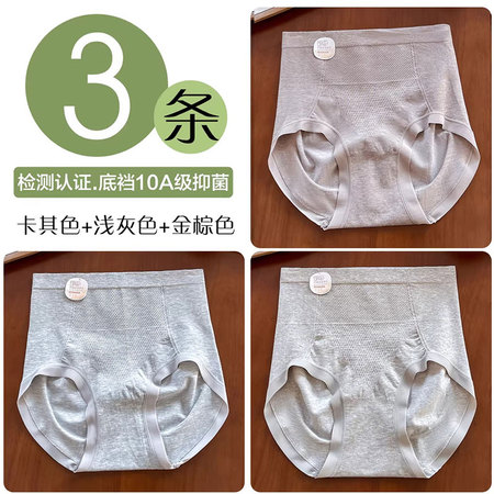 【3条装】砾驾高腰内裤10A桑蚕丝kang菌裆·DWFZ-7503【卡其色+浅灰色+金棕