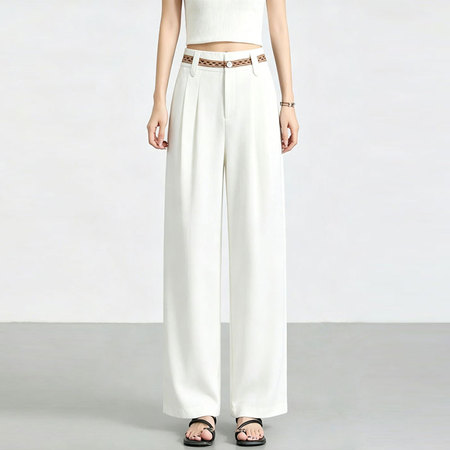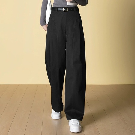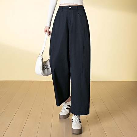 高腰松紧窄版垂感弯刀裤25126#·淡黄色