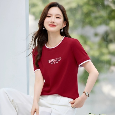 【92精梳棉】轩凌子收腰卷边袖口短袖T恤XS82520210·奶杏色