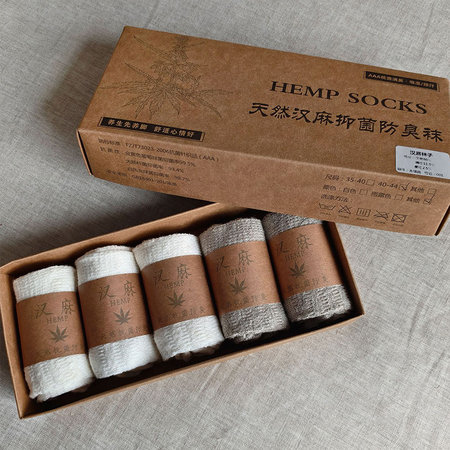 砾驾纯汉麻男女袜天然纤维袜子透气吸汗防臭yi菌短袜·MYX-1三白两麻(盒装)