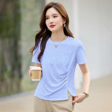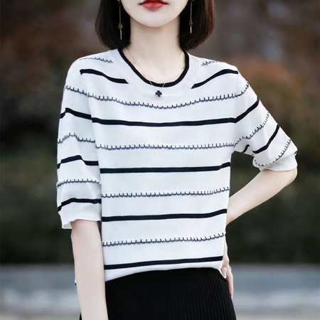 新款圆领冰丝透气宽松减龄百搭针织短袖·红色