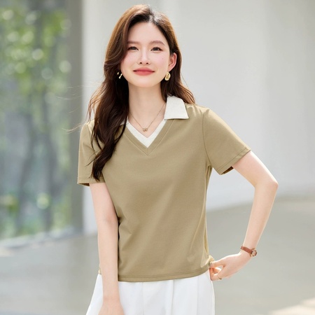 【92精梳棉】轩凌子假两件撞色短袖T恤XS82620045·兰花紫