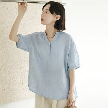 【爆款特价】凉爽透气莱赛尔天丝宽松舒适简约百搭上衣·V领-经典黑