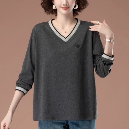 【95纯棉】新款刺绣宽松显瘦百搭圆领长袖上衣·西瓜红