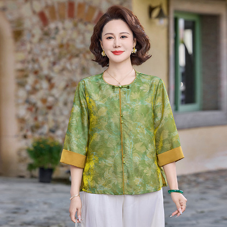 新款国风盘扣提花高级感气质显瘦外套·绿色