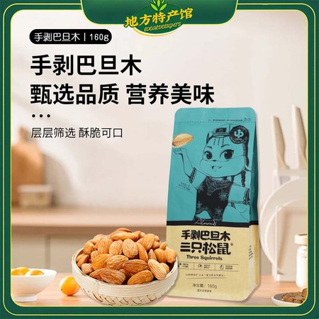 【年货不打烊】三只松鼠手剥巴旦木 160g*3袋装 坚果干果 香脆小吃