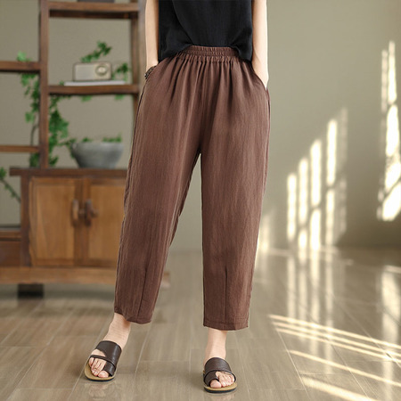 新款纯棉文艺复古高腰阔腿显瘦九分哈伦裤·雾霾蓝