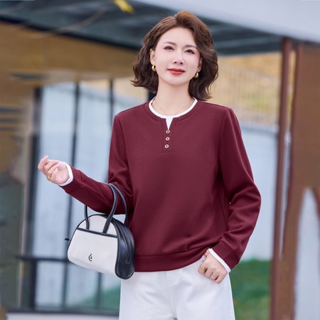 【92精梳棉】轩凌子刺绣立领长袖T恤XS92613004·安可拉红