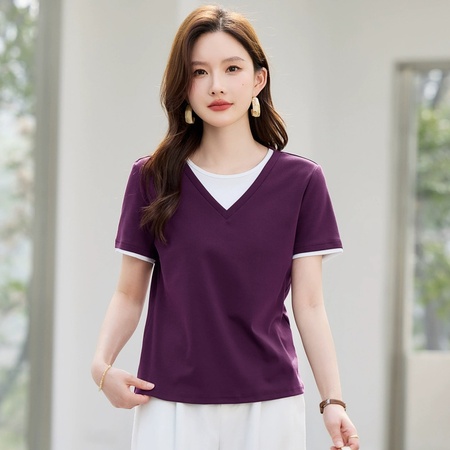 【92精梳棉】轩凌子假两件翻领短袖T恤XS82620087·清水绿