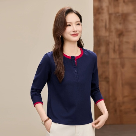 【兰精莫代尔】修娴舒弹U领短袖T恤M883·花灰色