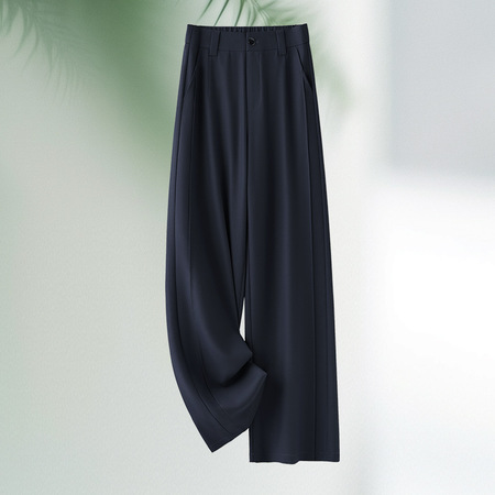 新款棉质冰丝遮肉显瘦宽松百搭九分阔腿裤·藏青色