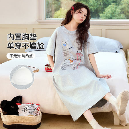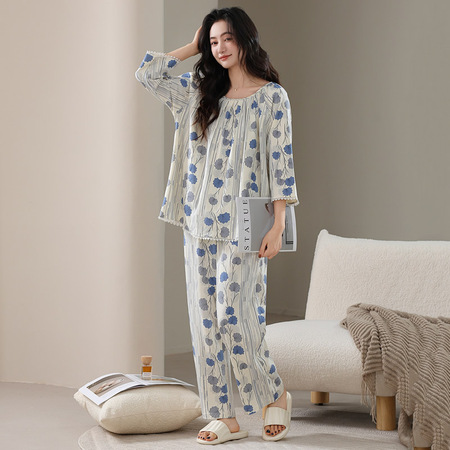 雀说 莱赛尔棉带胸垫女士短袖七分裤简约舒适居家可外穿睡衣套装·M6891