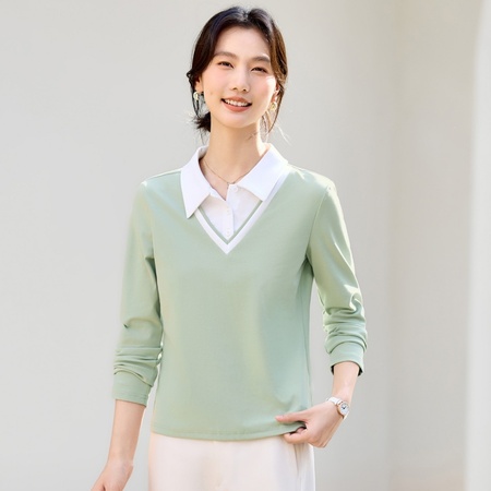 【羊绒触感】修娴慕斯明线撞色线时尚T恤W22·咖啡色