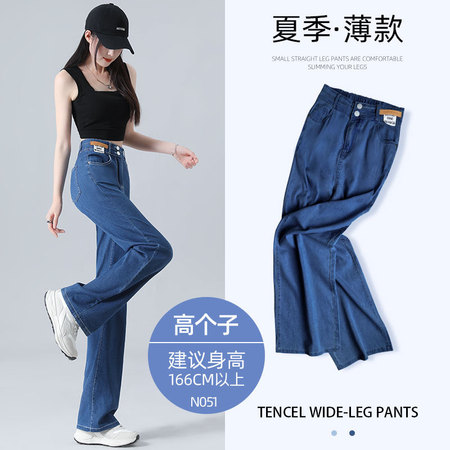 百搭花型松紧腰系带直筒阔腿裤2618#·牛仔灰