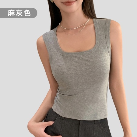 【天丝带胸垫】赛蔻高弹撞色假两件背心S133·栗棕色