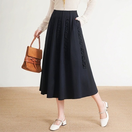 梦卓旋松紧腰口袋半身裙XH0560·黑色
