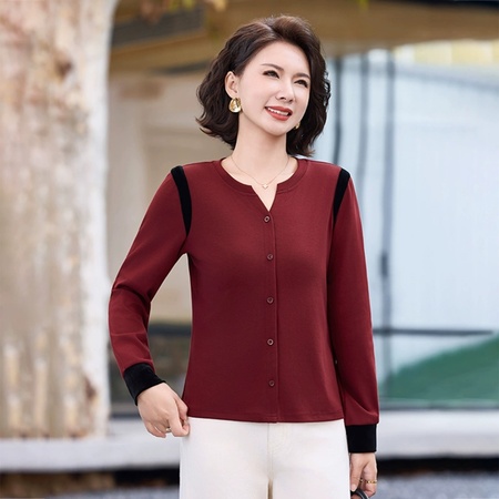 【92精梳棉】轩凌子高支撞色小V领T恤S82610012·安可拉红