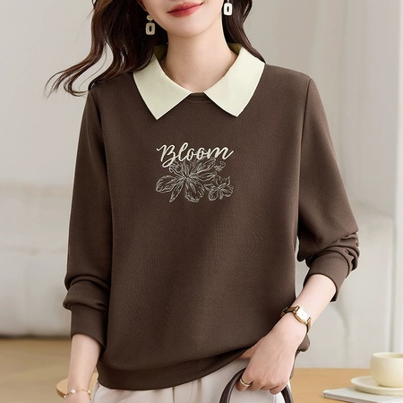 轩凌子轻薄绣花翻领卫衣S82510037·咖啡色