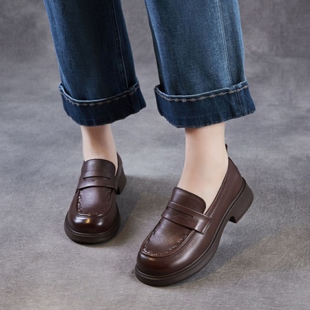 【手抓纹头层牛皮】至美轻软英伦复古厚底乐福鞋ZM269007·黑色
