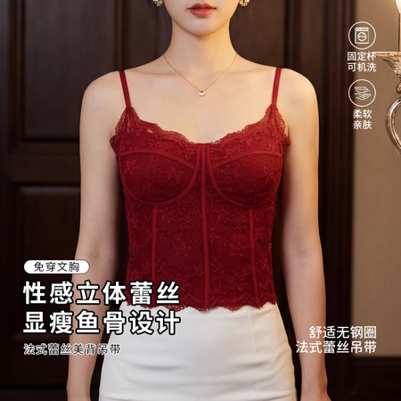 【罩杯一体】2件赛蔻蕾丝花边背心8873·麻灰色