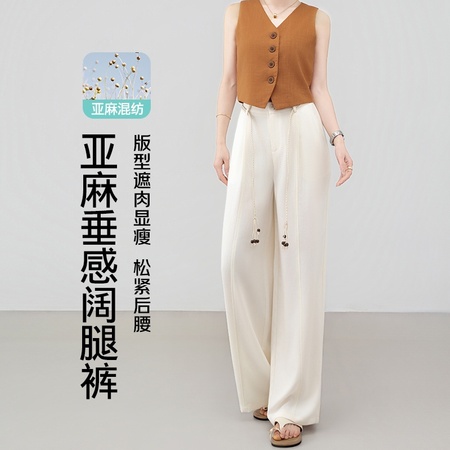 【大牌代工厂出品】和顺圣亚麻松紧腰筒喇裤26032·黑色