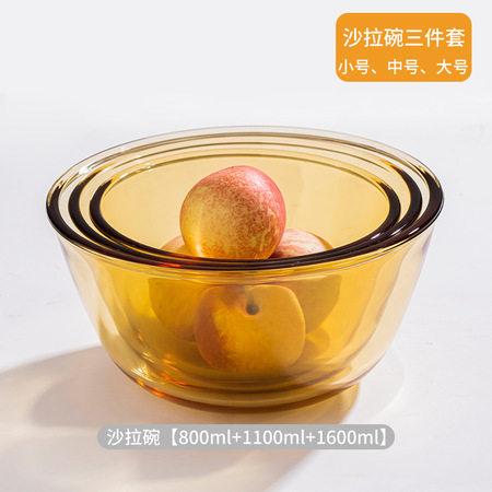 凡高琥铂色高硼硅加厚圆形沙拉碗餐具套组·三件套