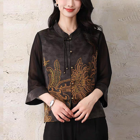 法薇姿桑蚕丝重工刺绣两面穿马甲会员专享·棕色