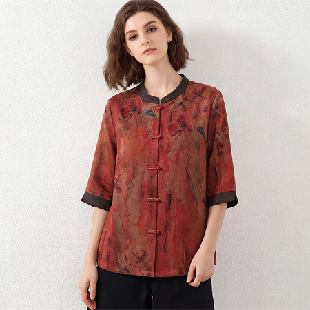 鳄鱼恤女士花萝香云纱上衣·绿色